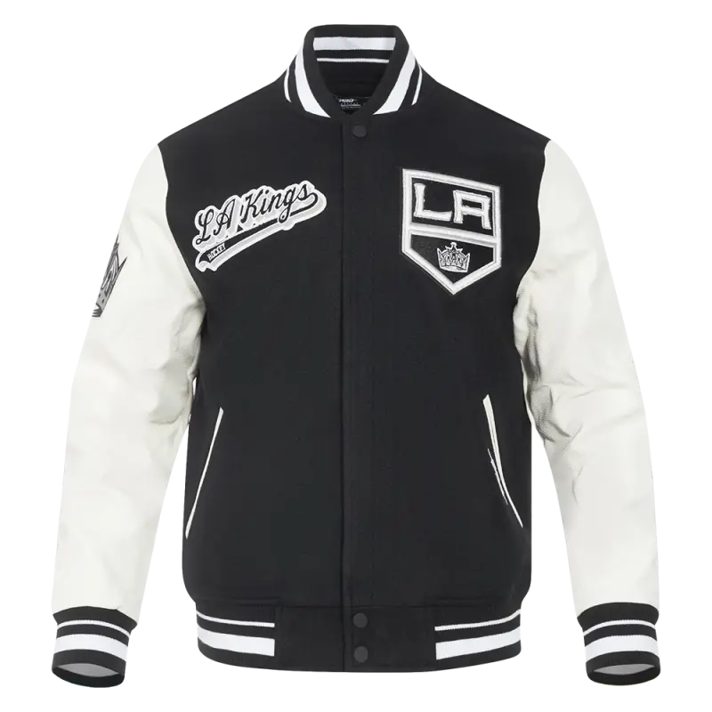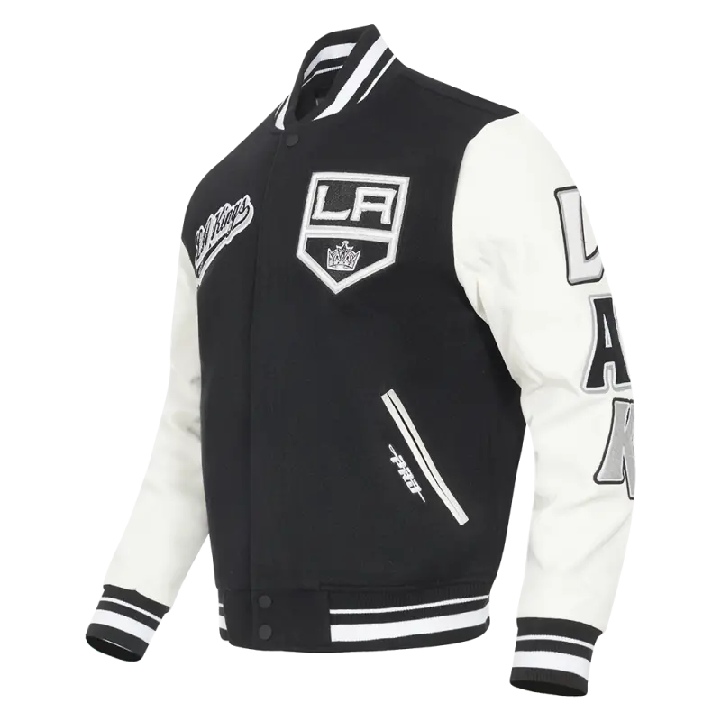NHL LOS ANGELES KINGS MASHUP MEN’S RIB WOOL VARSITY JACKET (BLACK\/GRAY)