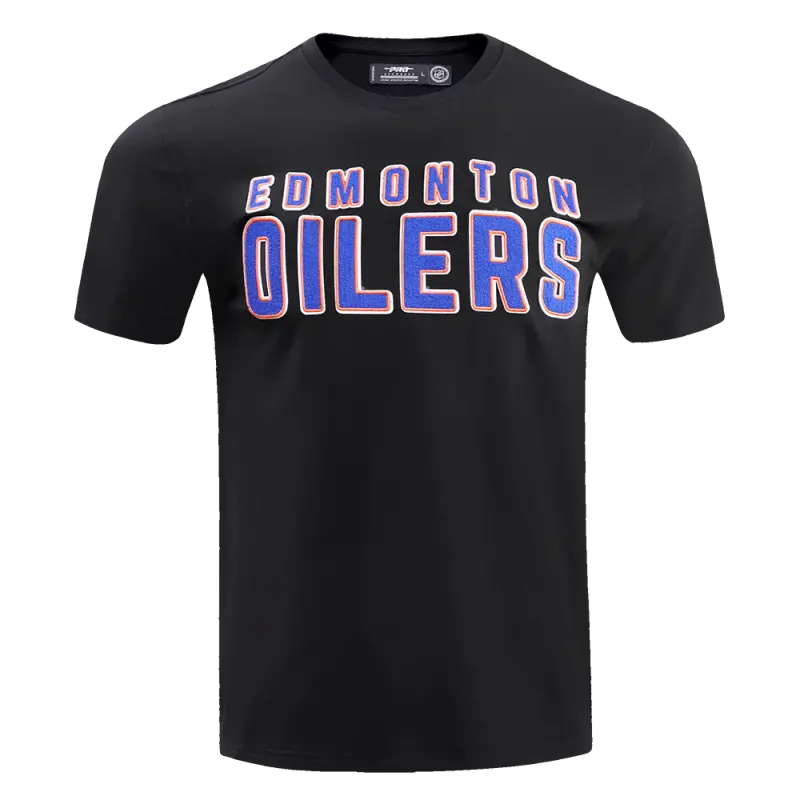 NHL EDMONTON OILERS CLASSIC CHENILLE MEN’S SINGLE JERSEY TEE (BLACK)