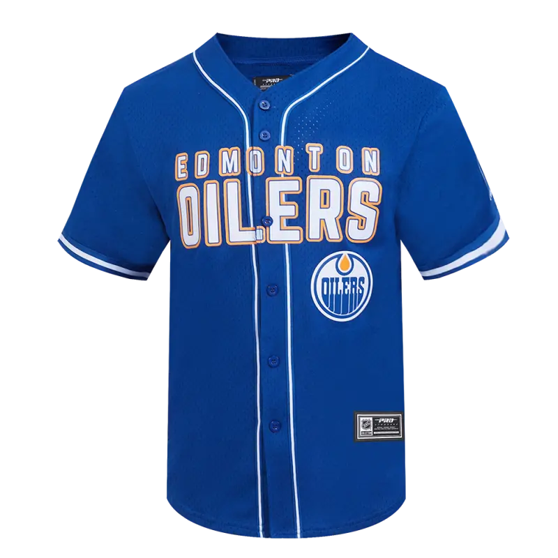 NHL EDMONTON OILERS CLASSIC MESH MEN’S BUTTON DOWN SHIRT (DODGER BLUE)