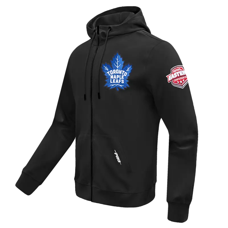 NHL TORONTO MAPLE LEAFS CLASSIC CHENILLE DOUBLE KNIT FULL ZIP PULLOVER HOODIE (BLACK)