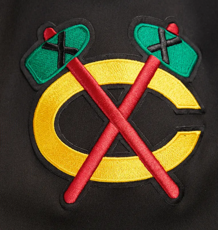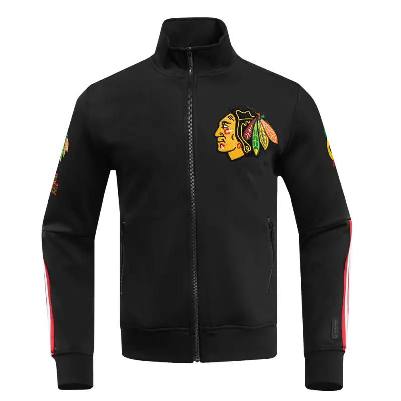 NHL CHICAGO BLACKHAWKS CLASSIC CHENILLE MEN’S TRACK JACKET (BLACK\/RED)