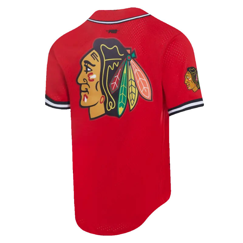 NHL CHICAGO BLACKHAWKS CLASSIC MEN’S MESH BUTTON DOWN SHIRT (RED\/BLACK)