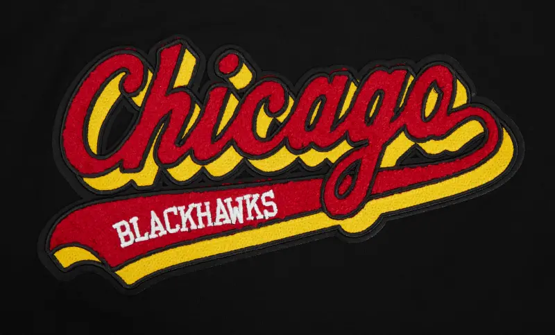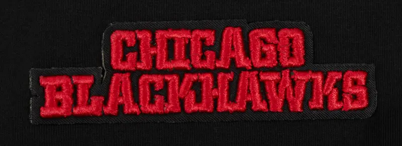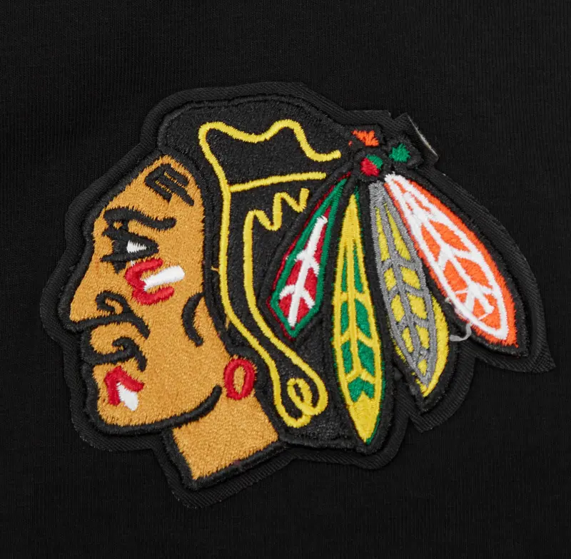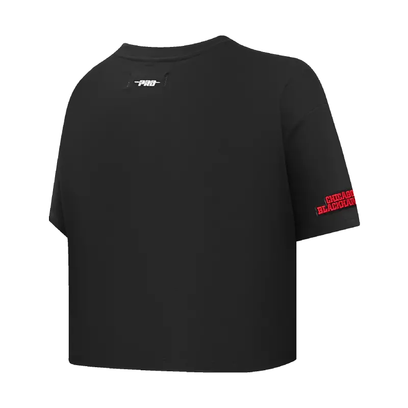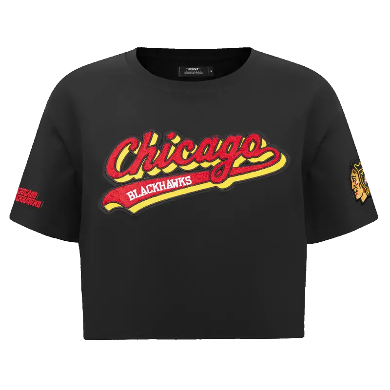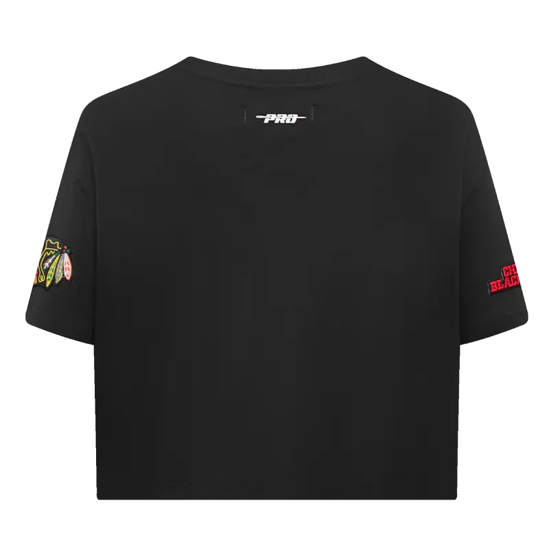 NHL CHICAGO BLACKHAWKS SCRIPT TAIL WOMEN’S SINGLE JERSEY BOXY TEE (BLACK)