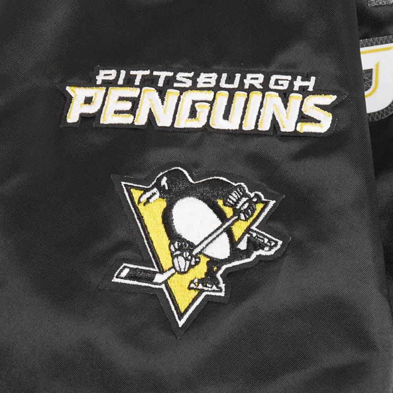 NHL PITTSBURGH PENGUINS CLASSIC WOMEN’S SATIN JACKET (BLACK)